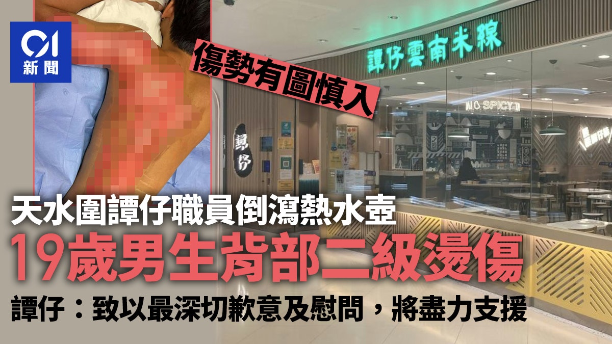 有網民昨晚在社交媒體發文,指兒子5日前在天水圍譚仔雲南米線進食時發生意外,店員拿取熱水壺時不小心倒瀉滾水,並潑到兒子背部,導致他一大半背部都被燙傷,其後送院醫治,醫生判斷是二級燙傷。
