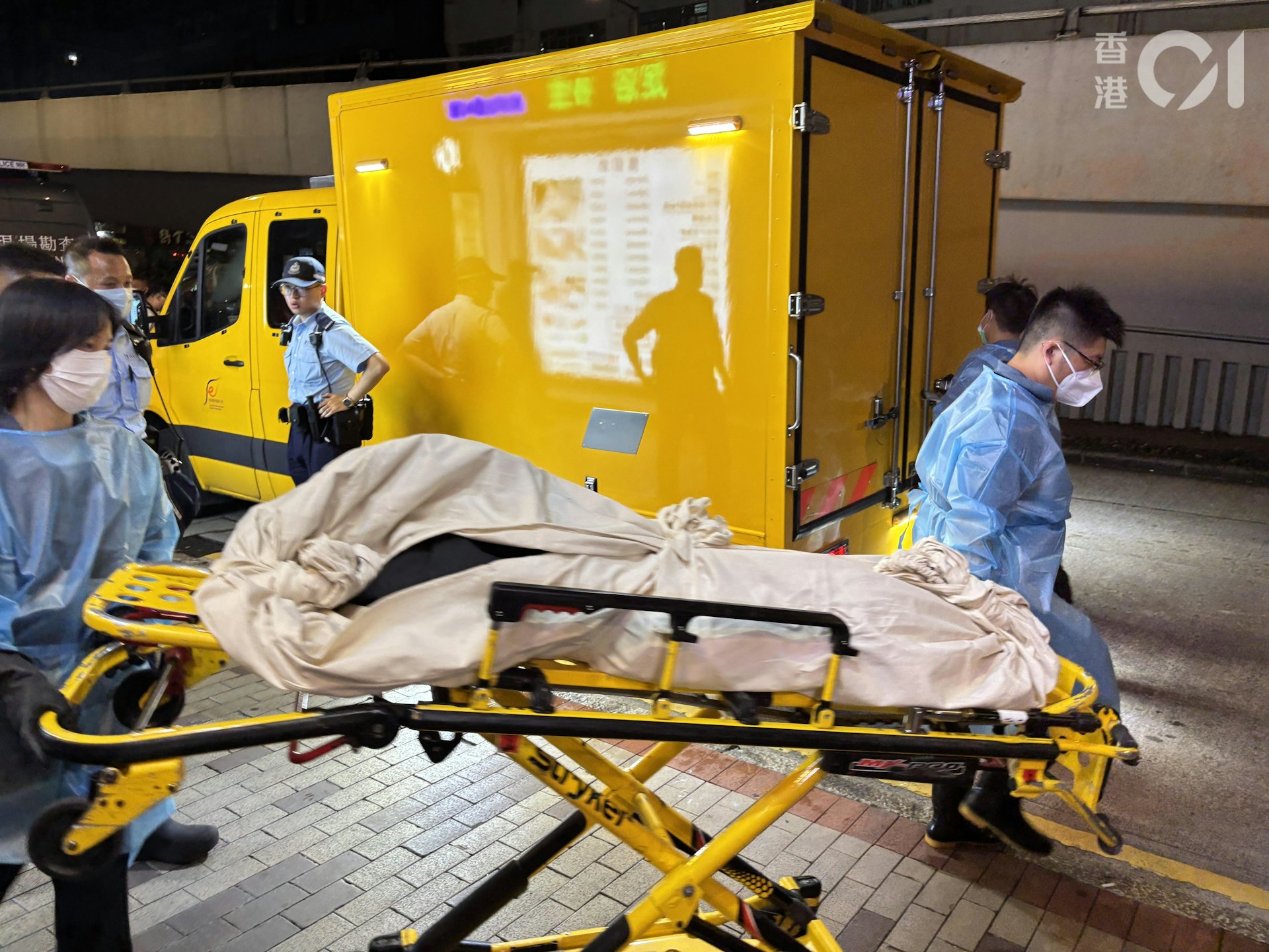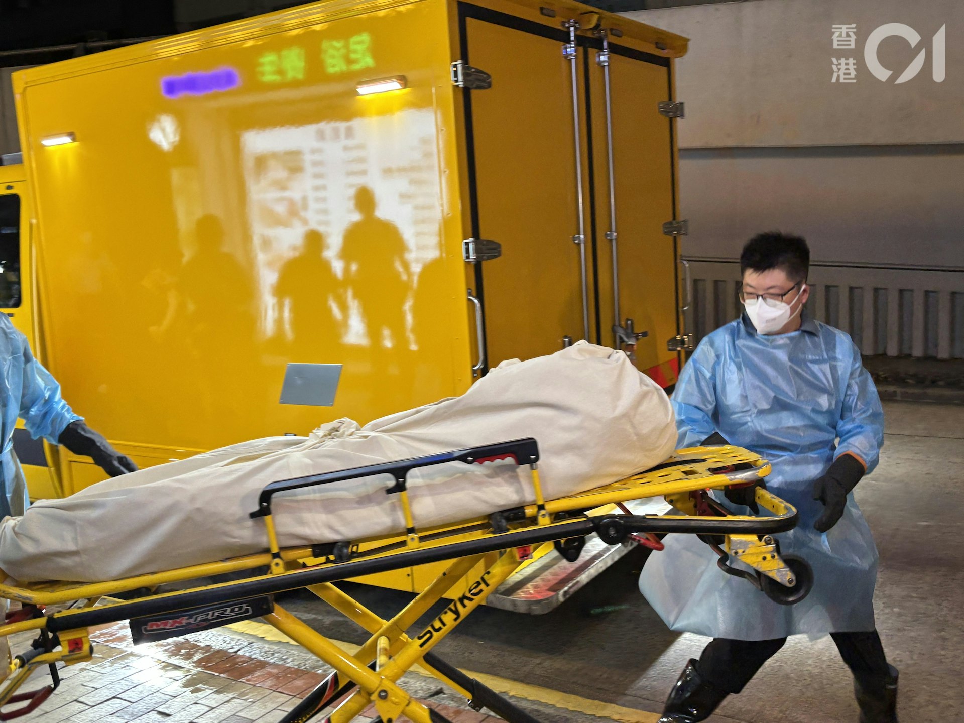 3 d- b! N9 Q; l3 x2 _! y/ |3 s& K公仔箱論壇兩名死者(左男、右女)遺體由仵工舁送殮房。