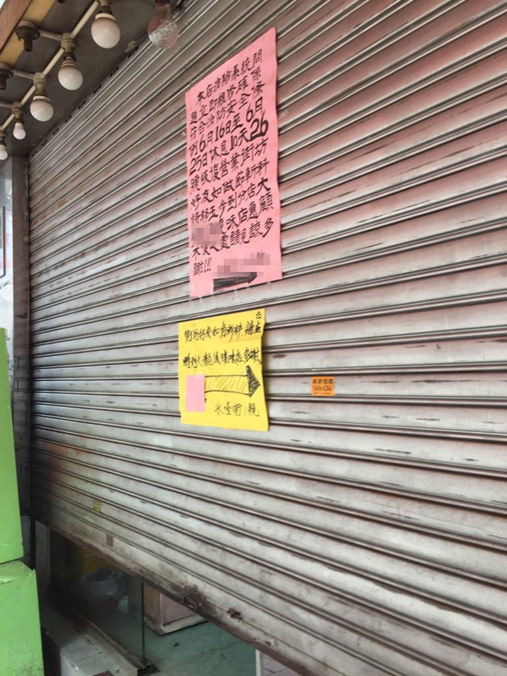 ( U/ x" @6 m3 D- u5 L) O停牌期間,職員貼出告示指餐廳因維修消防系統而關門。(麥偉明提供)- w v0 Y6 p* \" B7 v- ^