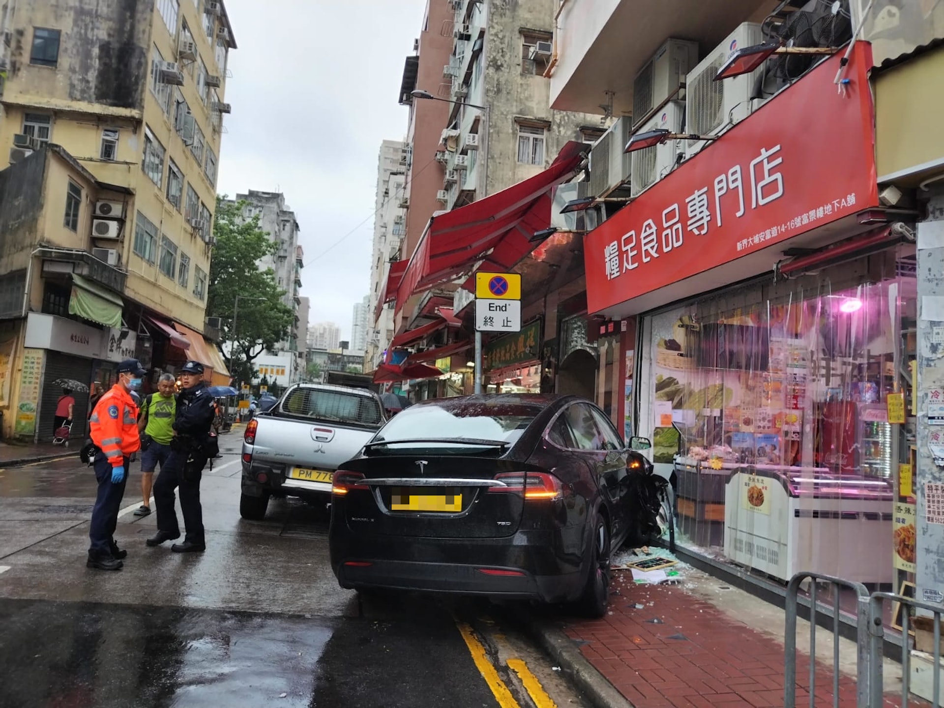 % W6 u; Q! E/ i( k, \% I公仔箱論壇私家車撞毀店舖門口。(網上相片)