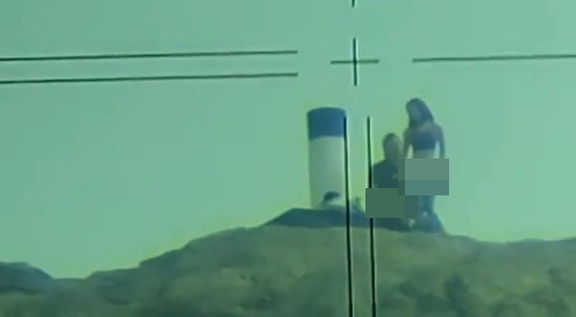 影片是從極遠距離拍攝,見到標高柱旁邊有一對上半身穿了衣服的男女,正以女前男後方式性交。(影片截圖)