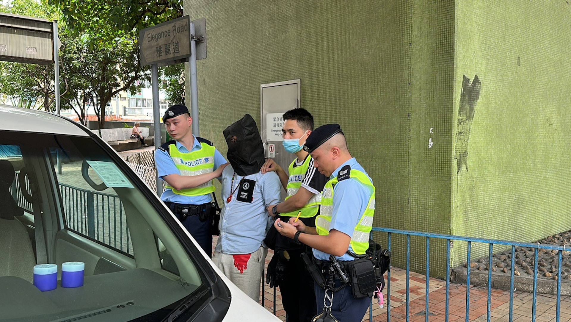 * a3 Q# T$ k* E |衝鋒隊在雅麗道截獲涉事七人車。(馬耀文攝)4 N1 L+ J/ ]8 k0 l* Q5 |