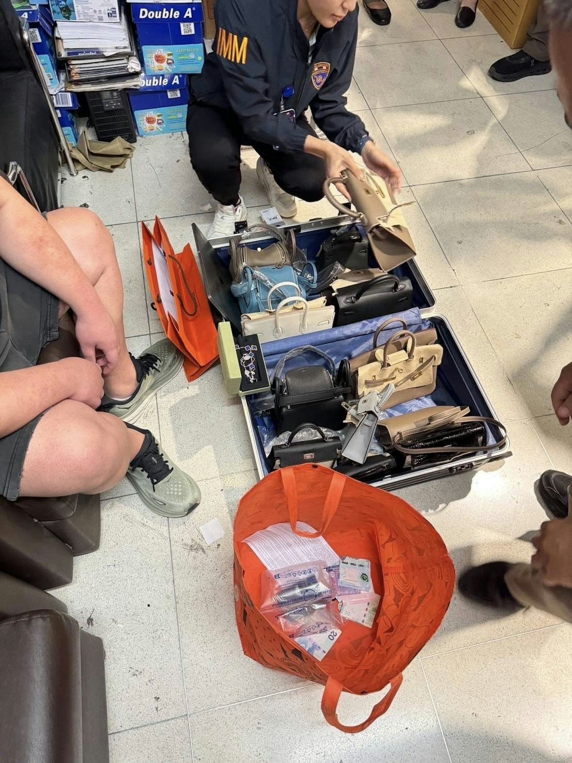泰國執法部門於客運大樓,截獲疑犯及檢獲逾20件贓物。(khaosod圖片)
