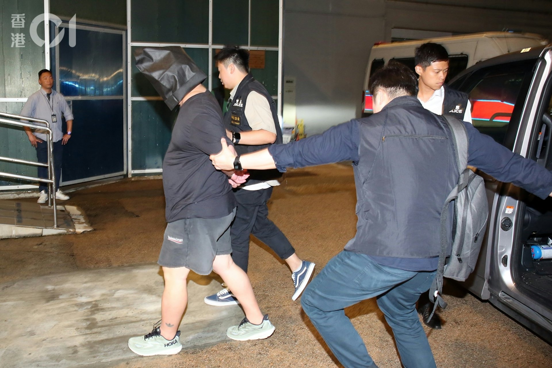 , t' O5 m, Q3 `, |7 G香港警方將疑犯押到尖沙咀警署。(李家傑攝)