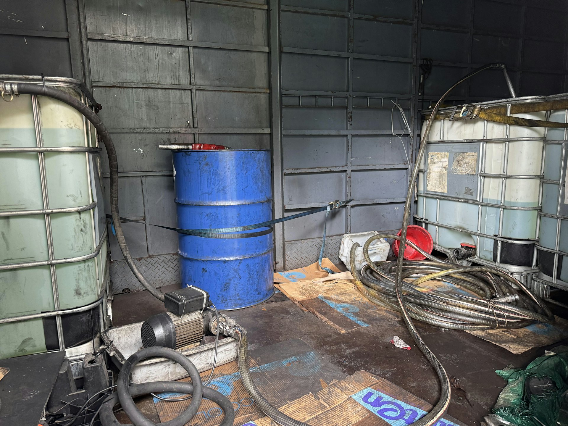 消防處今日(3日)上午再在葵泰路搗破一個非法加油站,共檢獲約2 400公升柴油,市值超過60,000元,並檢控一名男子。(消防處) |