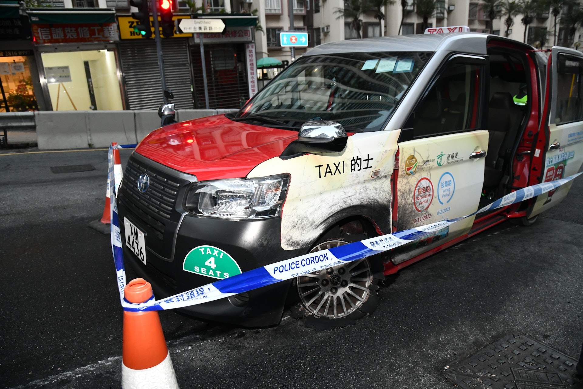 警方拉起封鎖線圍封涉事的士以進行調查。