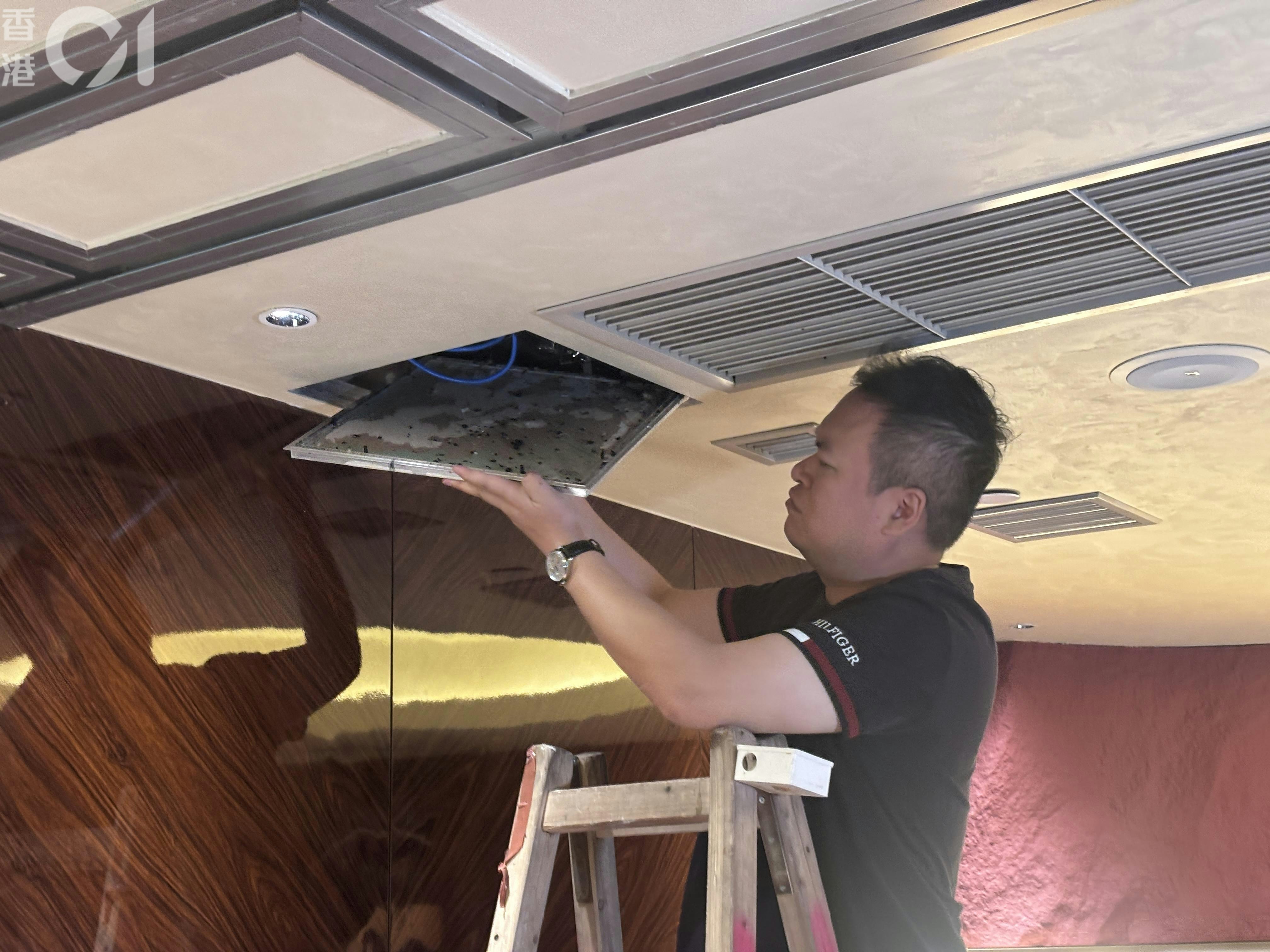 餐廳老闆鄧先生表示,發現問題後已即時告知業主及尋求專業滅鼠及滅蟲公司清潔。(林子慰攝)tvb now,tvbnow,bttvb0 b* r2 F) h) s2 I% c( l