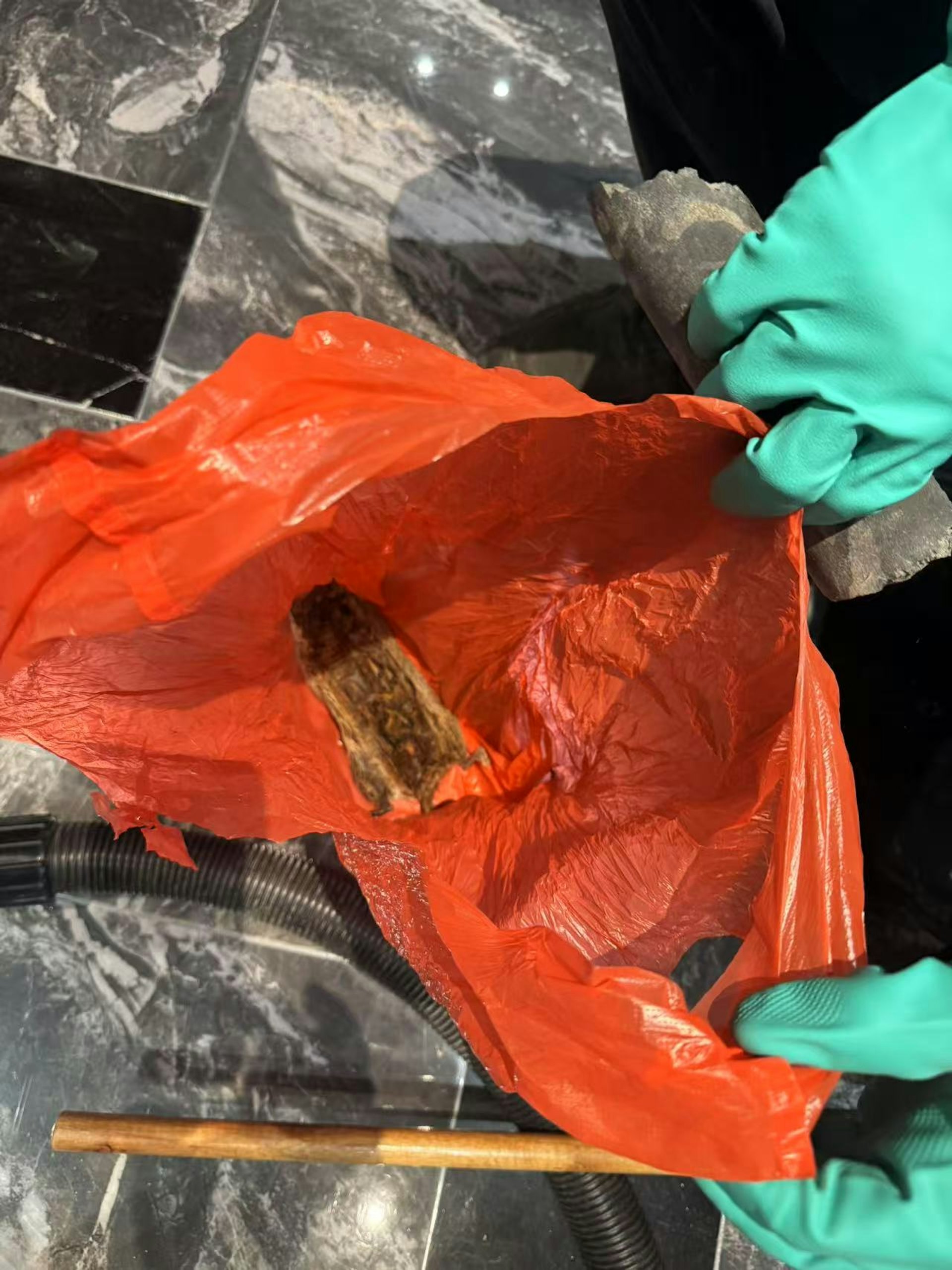 6 g& D F$ m6 x1 }tvb now,tvbnow,bttvb其中一塊假天花板拆下後,堆滿老鼠糞便。(林子慰攝)