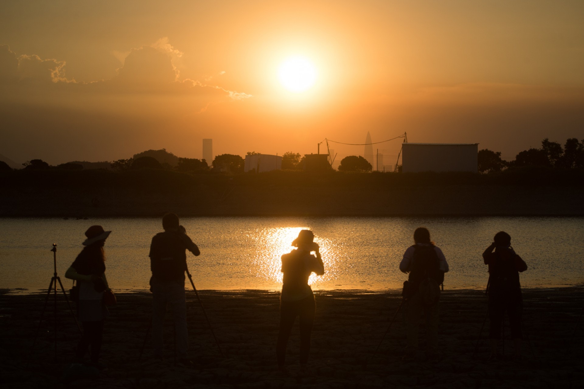 & d( J- G2 j( E& u, N傍晚時份,十多名攝影愛好者到來拍攝。(余俊亮攝)