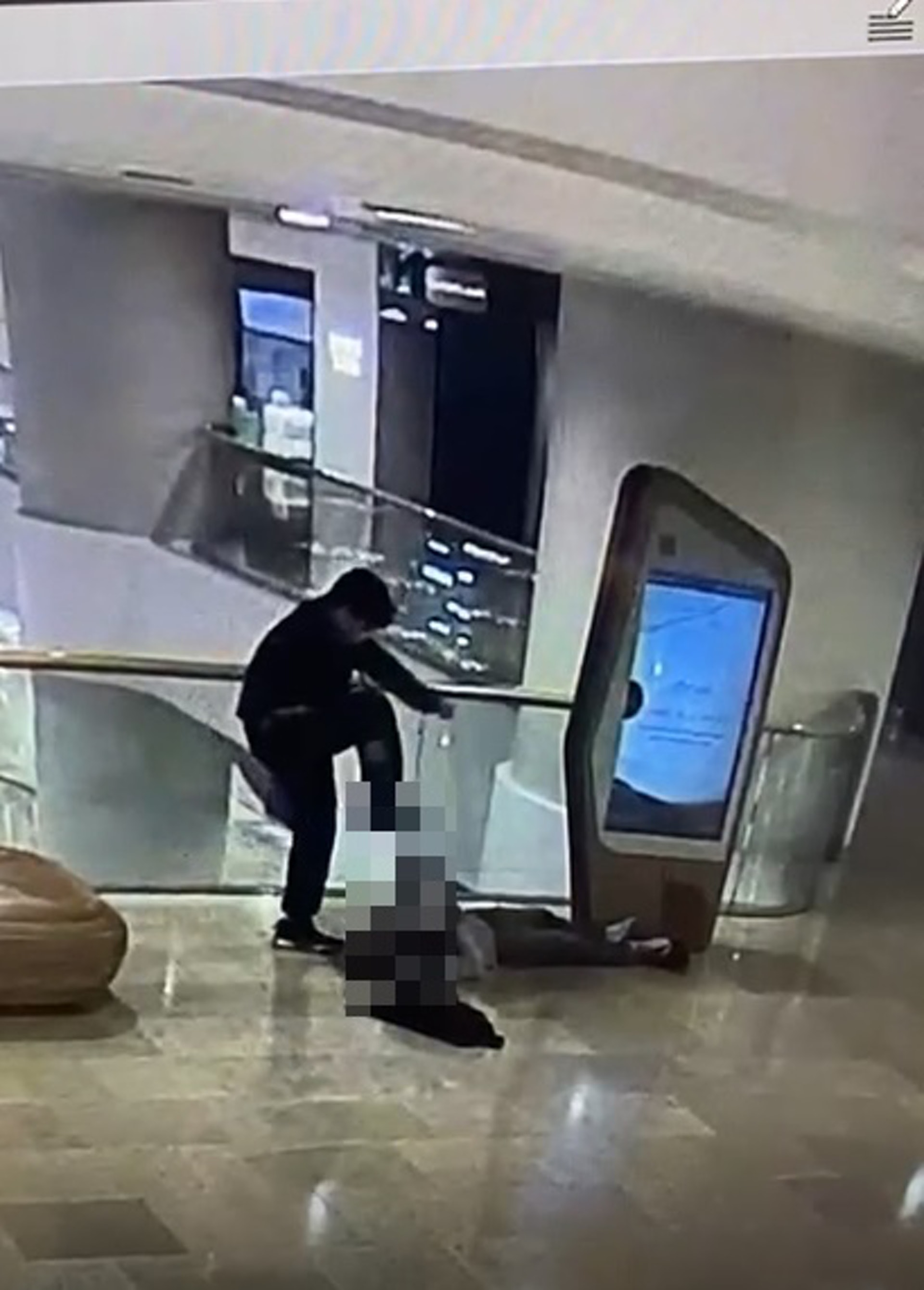 閉路電視片段拍得案發經過,片中一名身穿黑衫黑褲及戴口罩的男疑兇,從後箍頸將事主由商場座位上拉起,事主雙腳曾掙扎約5秒,惟其後疑失去知覺,疑兇續將事主緊箍數秒,其後鬆手將他拖跌在地上。疑兇最少8次猛力踢向及踩向事主的頭部,其間一度用手指向事主疑似講話,其後再次踩向事主身體後離去。