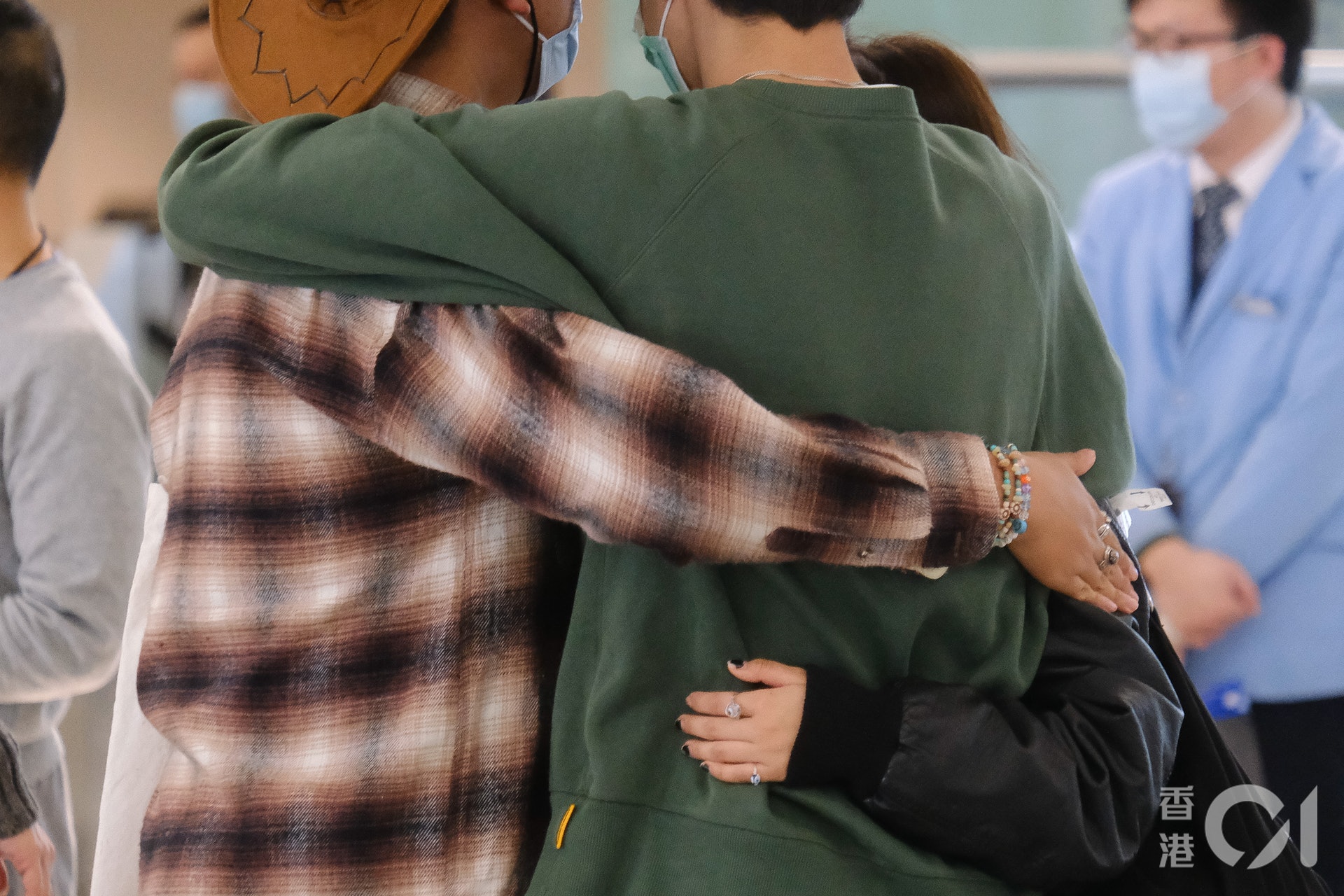 1月30日,港人在機場送別離港親友,流露不捨之情。(廖雁雄攝)+ D5 H3 G4 x: x A! a) g